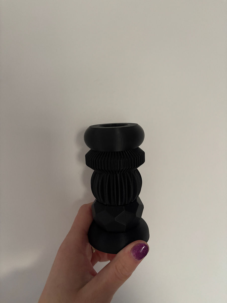 De onderdelen klikken stevig in elkaar, zodat je in een handomdraai een nieuwe kandelaar creëert.